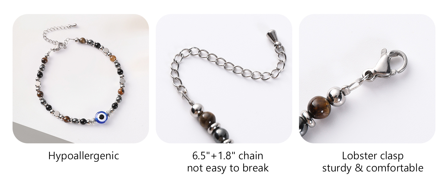 【High Quality Material】: Crafted with premium healing crystals beads and durable 316L stainless steel components, this crystal bracelet is 100% lead-free and nickel-free. Hypoallergenic by design, it's gentle on all skin types and perfectly suited for sensitive skin wearers—ideal for daily, long-lasting wear with no irritation.