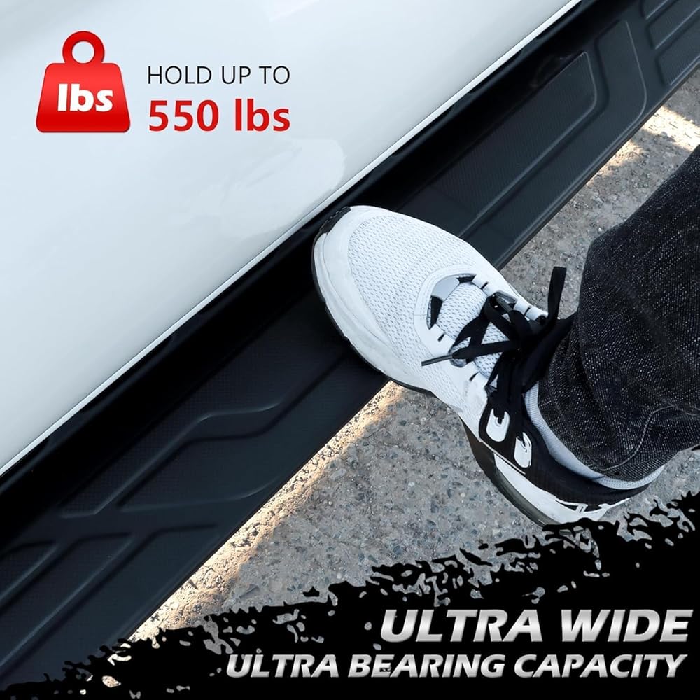 Design: Allowing for easy movements such as stepping in, stepping out and each side can support up to 600 lbs. Special non-slip tread and bottom groove design provides a secure foothold which you can step into your truck easily.