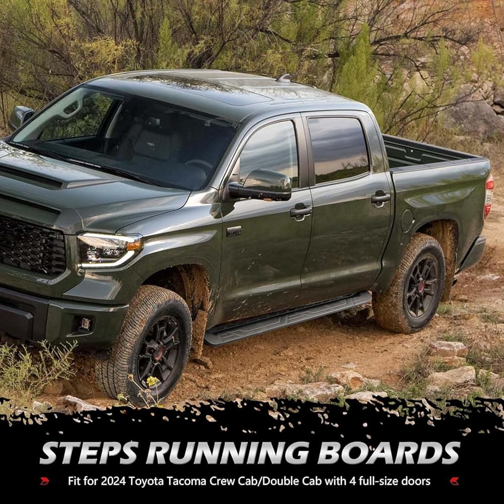 Dermon 7 Inch Running Boards Compatible with 2024 2025 Toyota Tacoma Double Cab Crew Cab 4-Door Side Steps Nerf Bars 600Lbs Heavy Duty Manganese Steel + ABS Black