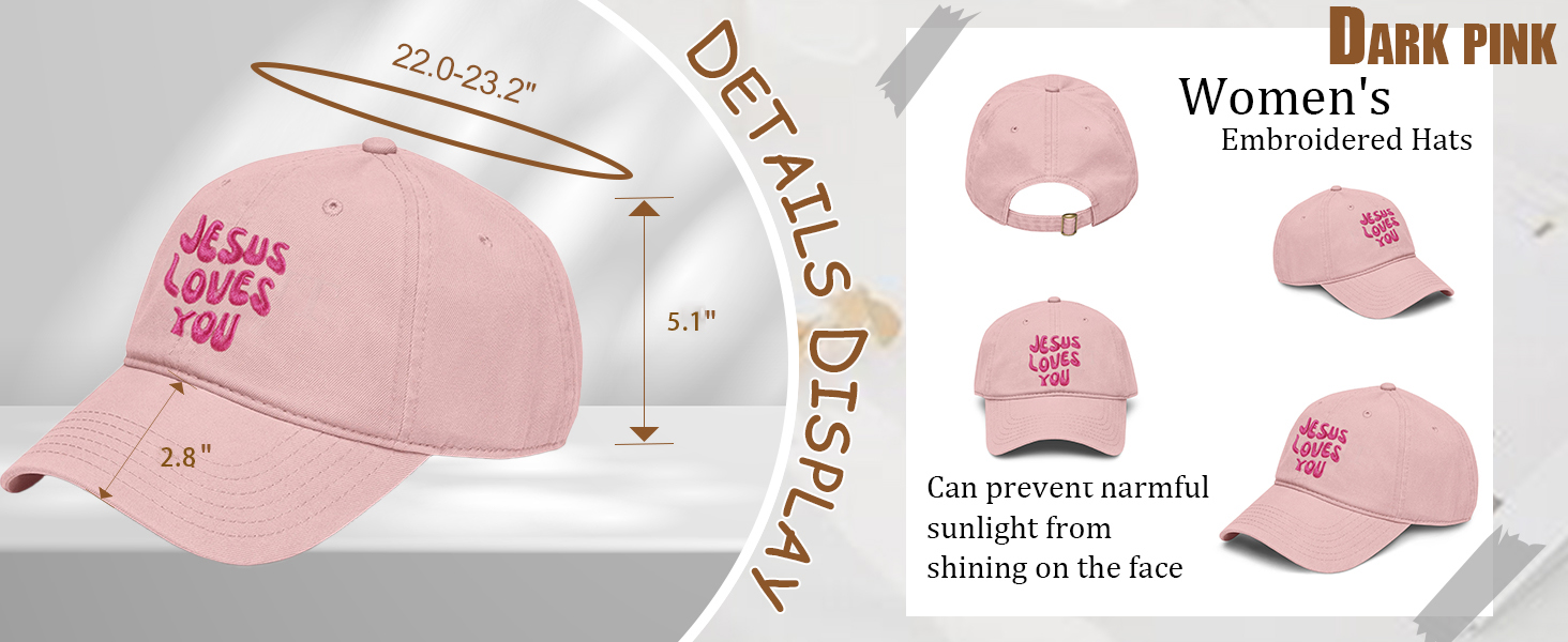 Christian Faith Design: Embroidered with the meaningful message “Jesus Loves You,” this Christian baseball cap expresses faith, love, and hope in a simple yet stylish way. A perfect faith accessory for women and men who love Jesus