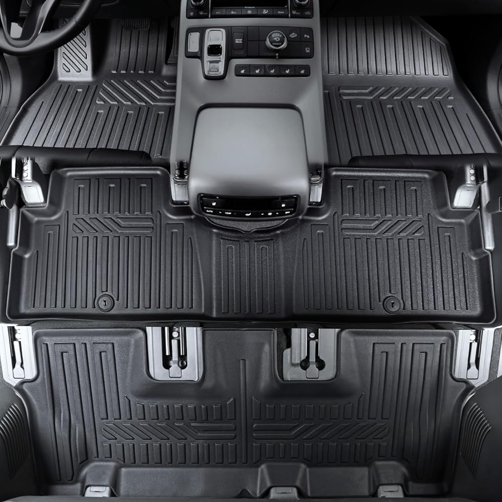 Customized Design: Package includes 4pcs floor mats, 1pcs cargo mat, 1pcs lower cargo mat, and 2pcs top tether protectors for Hyundai Palisade 2025 2024 2023 2022 2021 2020 SE/ SEL/ SEL Premium/ XRT/ Limited/ Calligraphy. If you have the 8-seat model, you need to cut along the pre-set cutting lines for the 3rd row floor mat