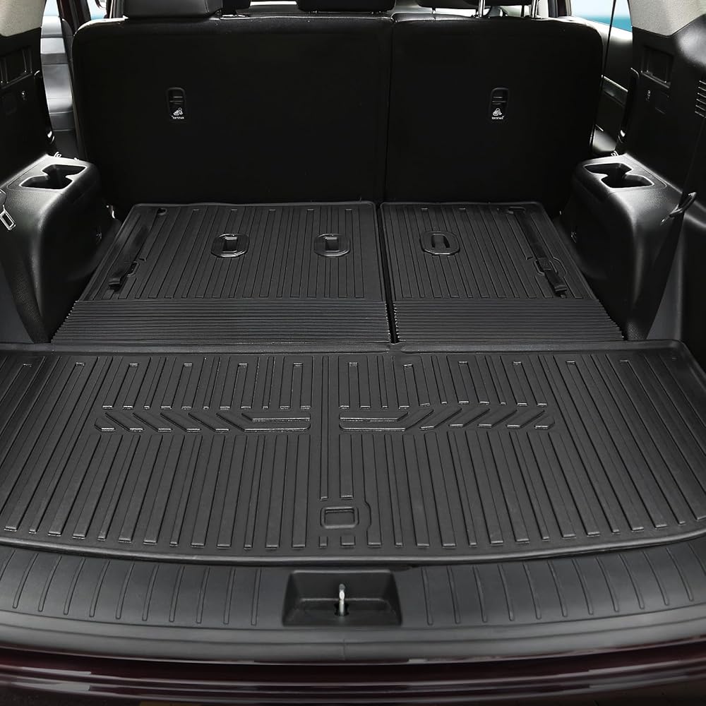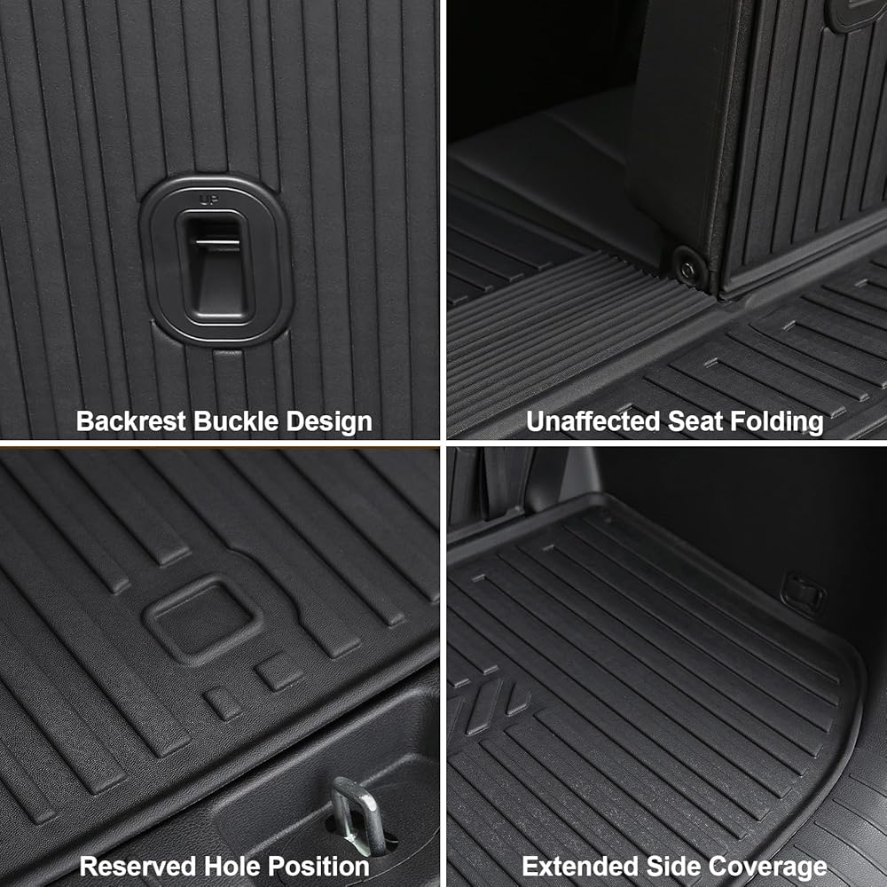 Upgraded Design: Cargo mat with 2 and 1 design allows you to adjust the seat easily; extended floor mats covered the full isle way to the 3rd row