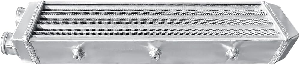 Product size - The overall size of the intercooler is 26.3"L x 7" W x 3.3"H / 668mm x 172.9mm x 82mm, and the core size is 22" L x 5.6"W x 2.7" H / 550mm x 141.6mm x 68.5mm. The inlet and outlet diameters are both 50mm / 2". The intercooler is a universal intercooler that is suitable for most turbocharging systems and can be adapted to appropriate sizes