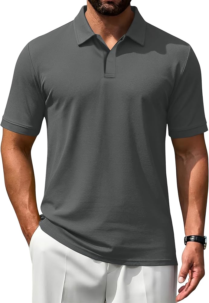 【STAY-CRISP COLLAR & NO-CURL】 Tired of floppy, messy collars after one wash? Our men's golf polo shirts feature a reinforced ribbed collar that maintains its shape and resists curling. Whether you're on the 18th hole or in a business meeting, you'll maintain a sharp, professional silhouette without the need for constant ironing.