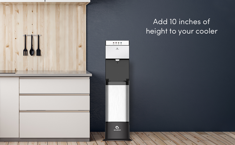 HEIGHT EXTENDER: This base will add 10 inches of height to your existing Avalon bottom loading or bottleless freestanding water cooler.