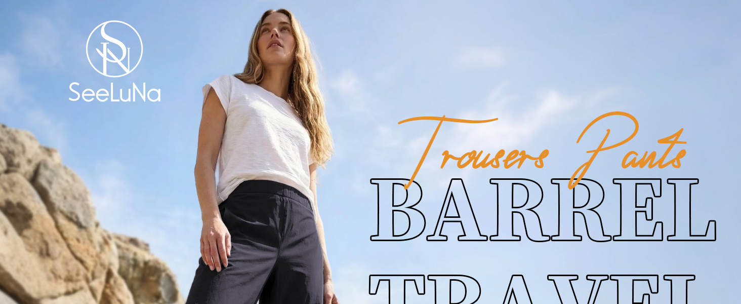 Feature: Soft barrel pants for women, trousers pants for women, solid color, baggy fit, versatile, side pockets, a hidden elastic waistband in the back, soft, skin friendly, lightweight