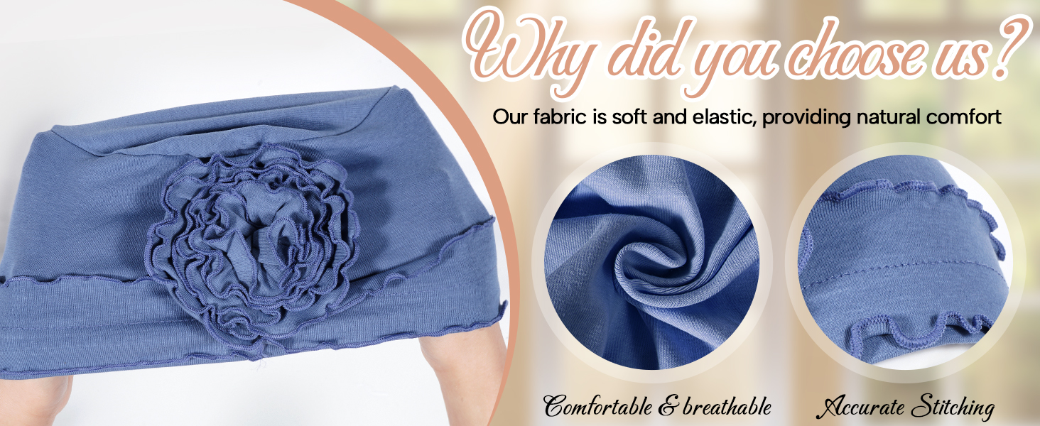 High - Quality, Comfortable Material This chemo turban for women is made of 92% cotton and 8% spandex fabric. It's lightweight, breathable, and soft. Gentle on sensitive scalps, it absorbs sweat well, is highly elastic for a non - tight fit, and colors don't fade. It gives all - around head comfort.