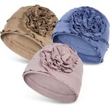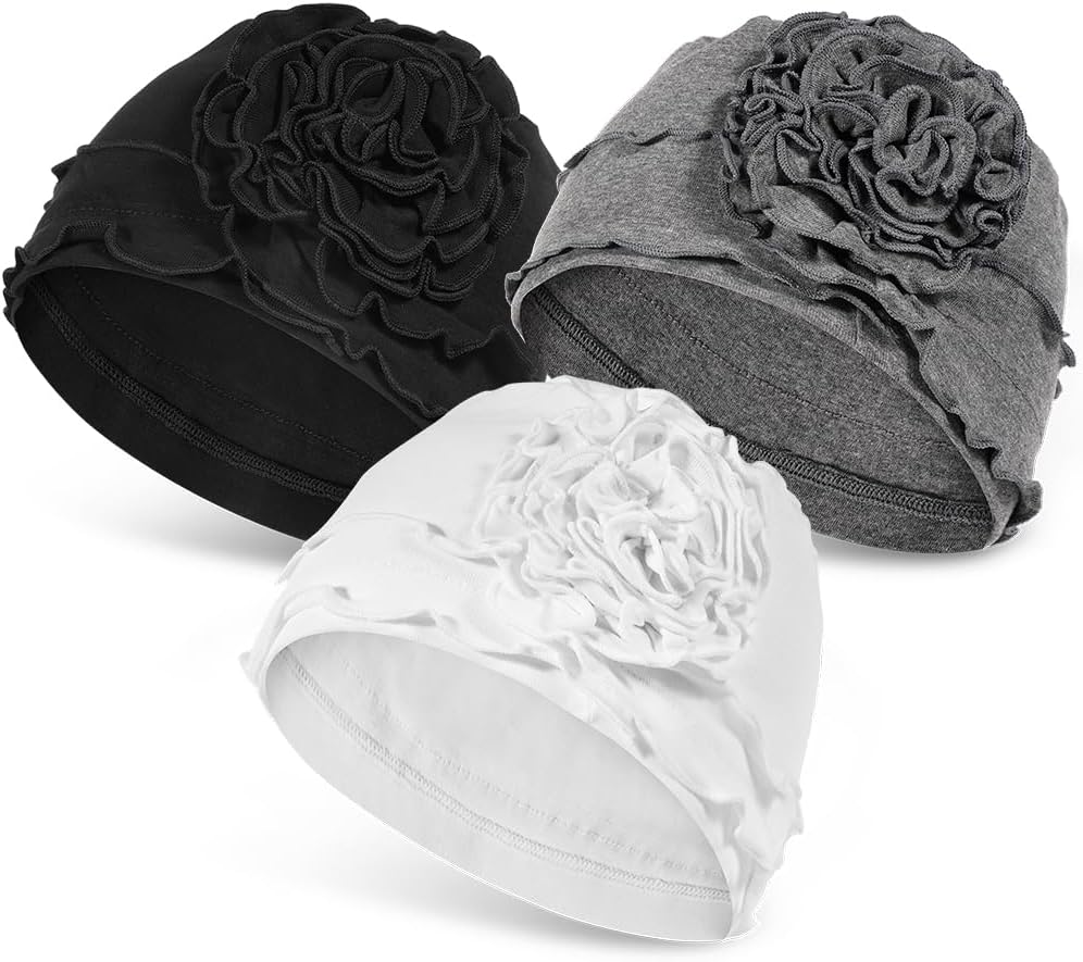 Stylish, Versatile Design:Features elegant lettuce edges and a flower that can be placed anywhere. It shows women's tenderness, elegance, bravery, and confidence, adding charm. The classic turban shape, whether in solid colors or paired with a scarf, suits work, parties, sports, and different dress styles, showing your unique fashion sense.