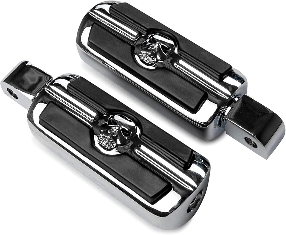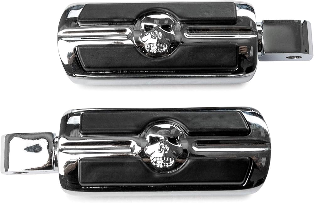 Chrome Skull Foot Pegs Compatible with Honda Cruiser Motorcycles Footrests (Shadow Magna Ace/Aero/Spirit/Phantom/RS Fury Rebel Valkyrie Interstate Sabre/Stateline VTX1300 VTX1800 etc.)