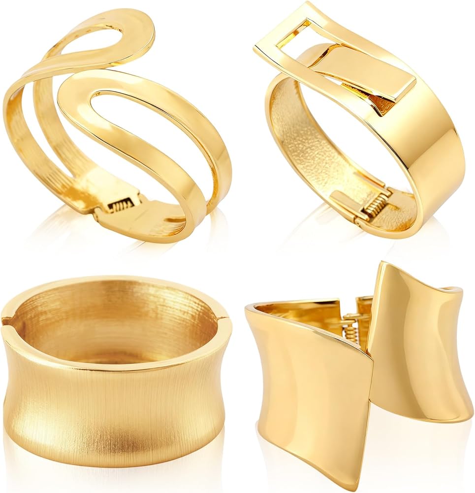 Chunky Gold Cuff Bracelets Set: This set includes 4 stunning chunky gold cuff bracelets designed for women who love to make a bold fashion statement. Each piece is crafted to stand out, adding a touch of glamour to any outfit.