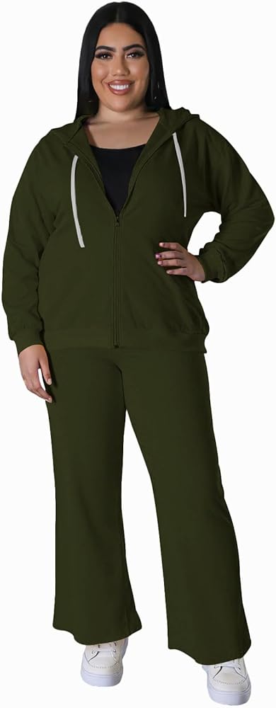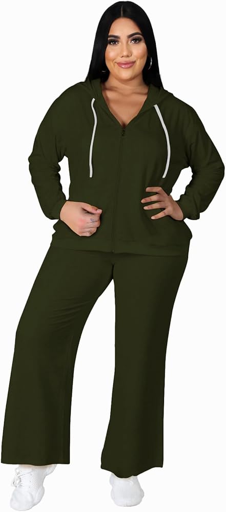 "Tycorwd Women's Plus Size Two Piece Outfits Velour Zip Up Hoodies Sweatsuits Sets