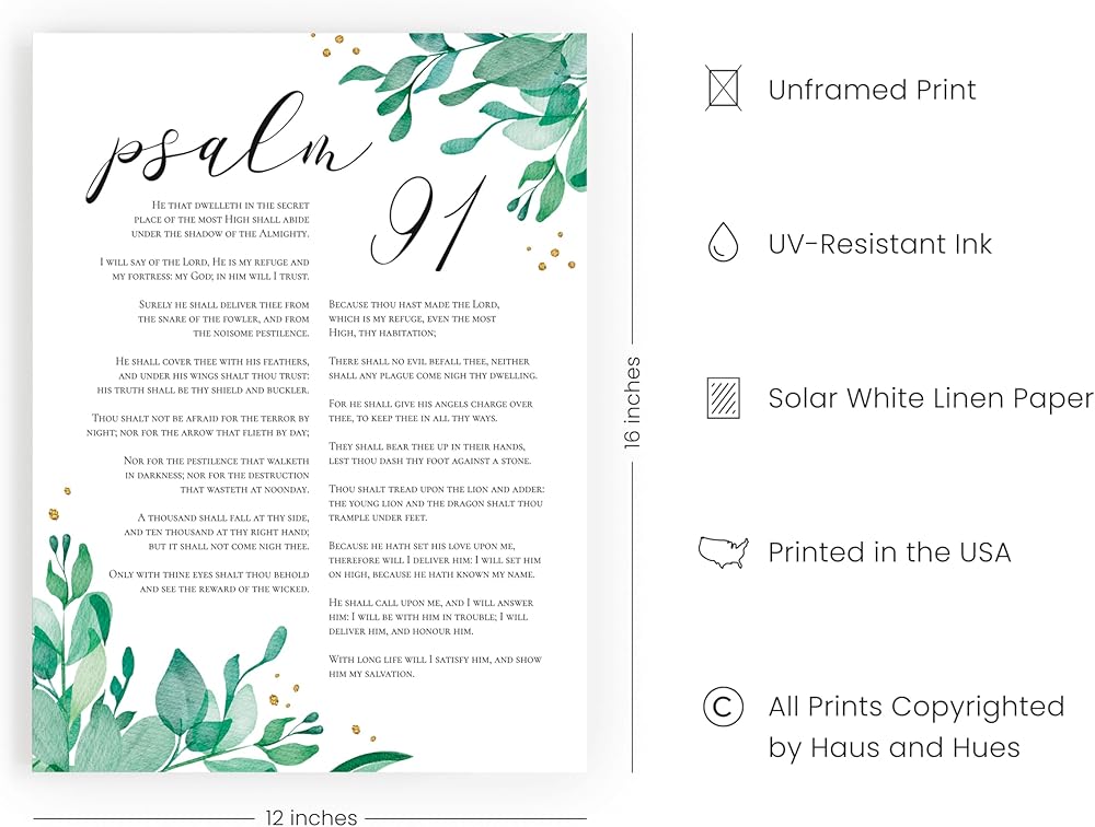 HAUS AND HUES Psalm 91 Wall Art - Bible Verses Wall Art, Religious Wall Quotes Bible Verse, Artwork with Scripture Art, Religious Gifts for Women, Christian Prints and Posters (Unframed, 16x20)