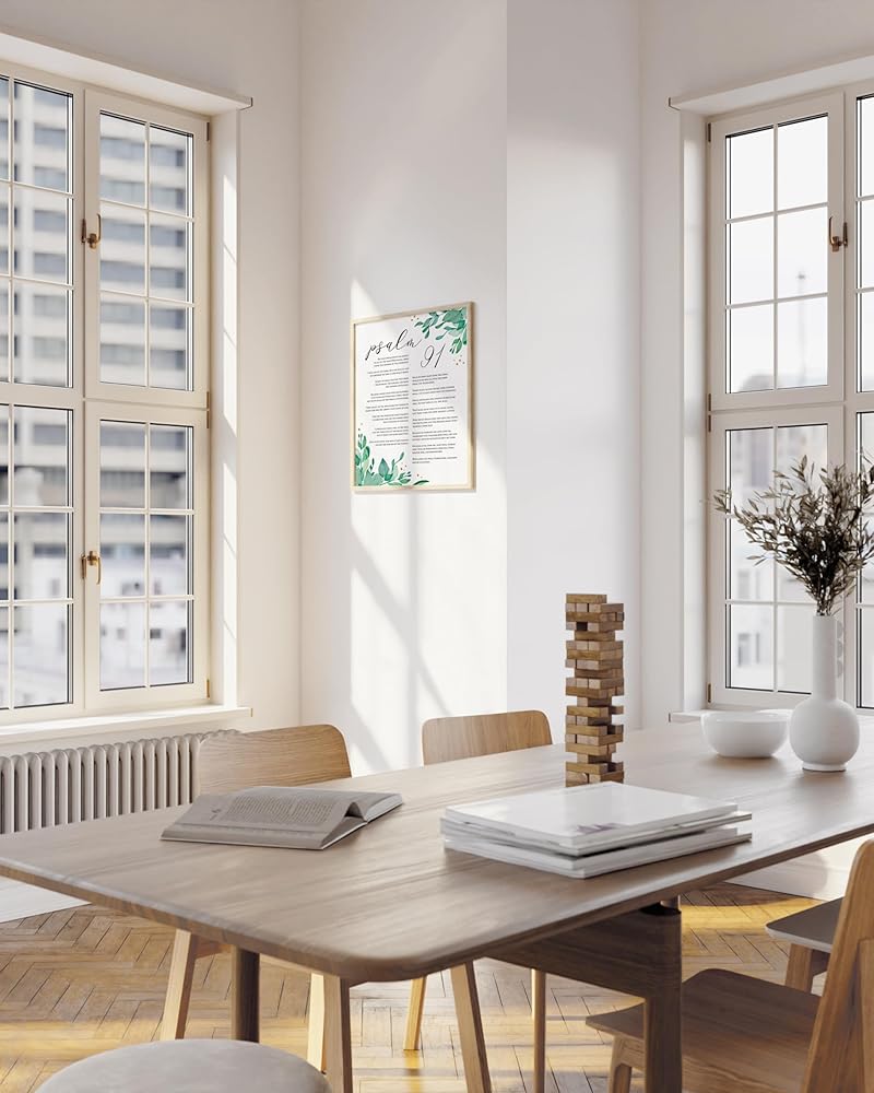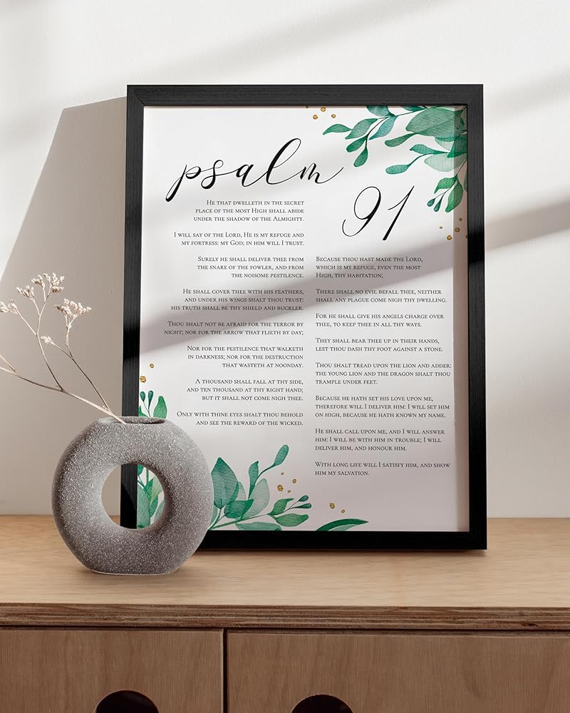 BE INSPIRED EVERY DAY: This beautiful Christian art features Psalm 91 in a unique and eye-catching way. The Bible verse wall decor is on a white background and is finished with a beautiful botanical print. The colors on this framed religious art are calming and the detail is exquisite
