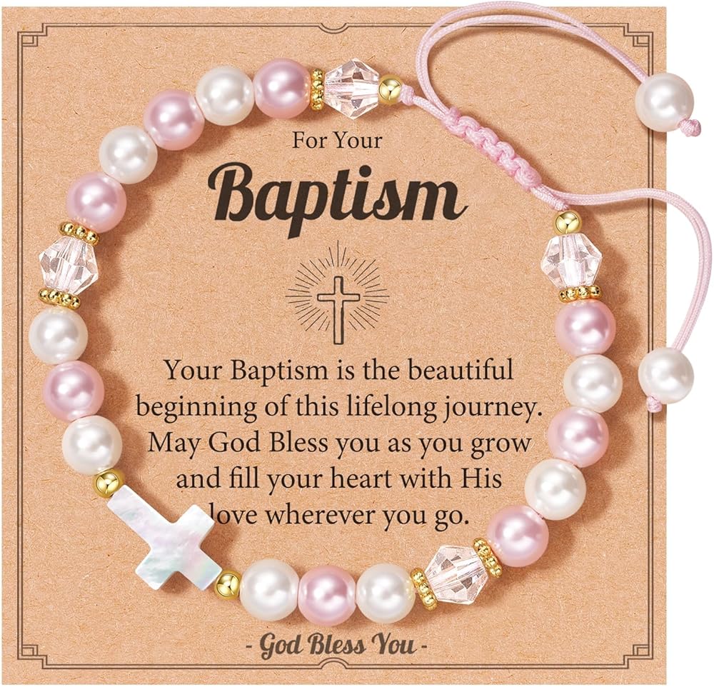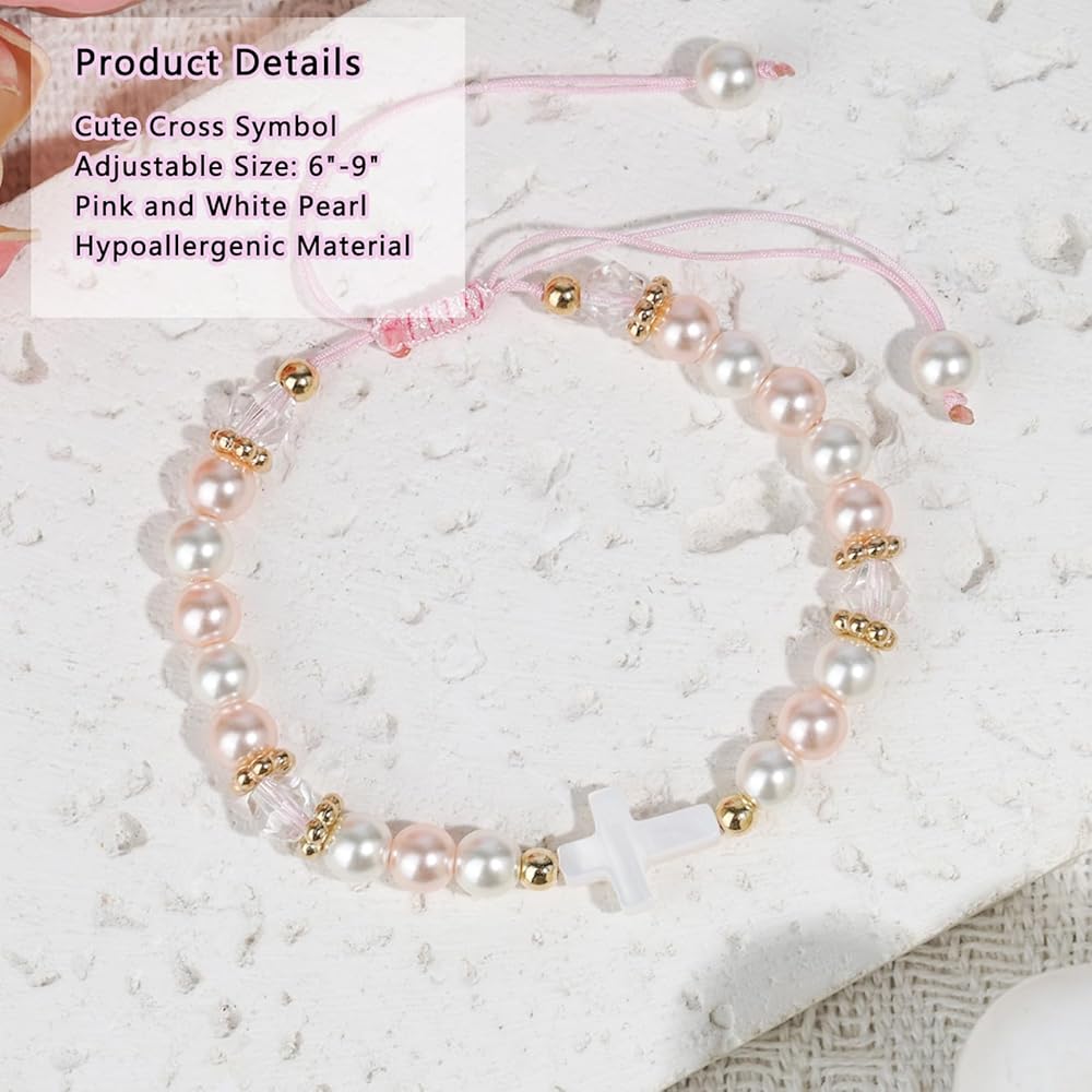 Meaningful Baptism Keepsake - This elegant pearl cross bracelet serves as a cherished religious gift for girls' baptism ceremonies, symbolizing faith and God's love