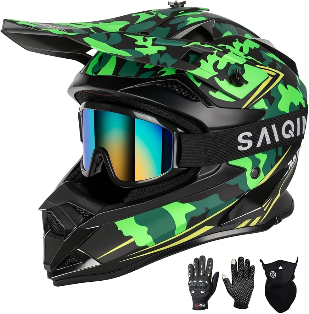 SPARK Adult Motocross Helmet Dirt Bike Helmets Full Face Motorcycle Off-Road Mountain E-Bike BMX MX ATV Helmet (with Gloves Goggles Mask) 4Pcs Set, DOT Certified
