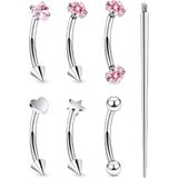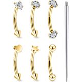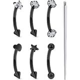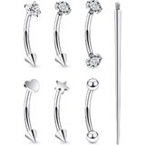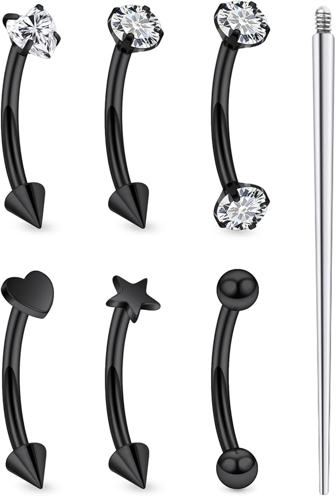 【Package Includes】: Round cz, heart cz, heart shape, star shape, double-ended ball, and double-ended cz (1pc each) eyebrow ring piercing jewelry ,1 pcs piercing taper insertion tool