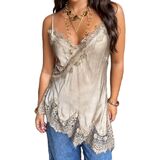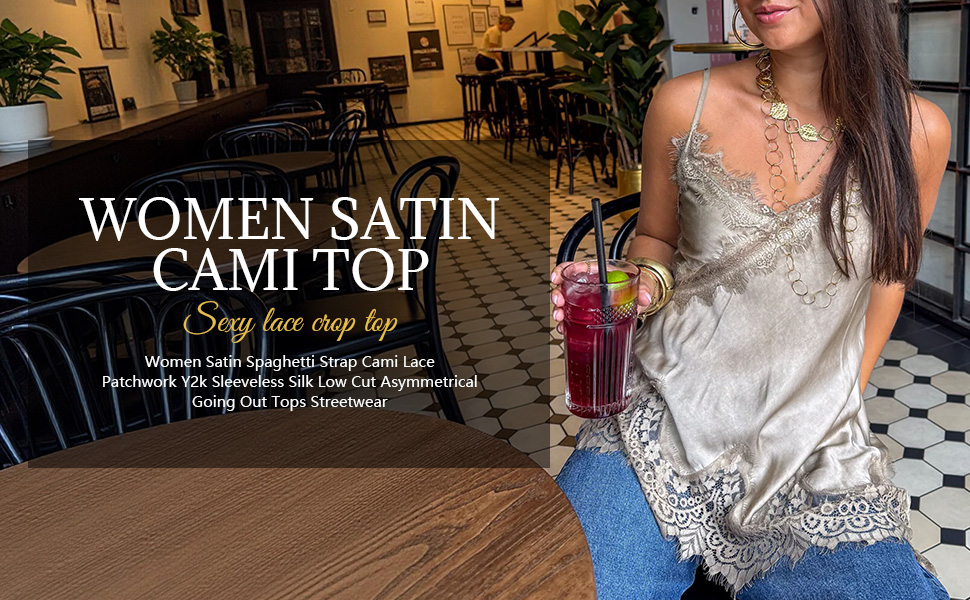 Design: Women satin cami top, lace trim camisole, lace trim, low cut, solid color, backless, irregular hem, sleeveless, v neck. Irregular cutting design makes your overall look more fashionable and sexy