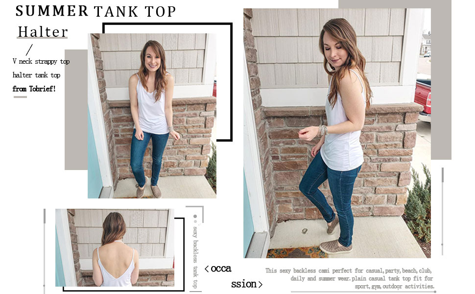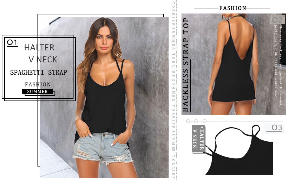 Feature: This cami tank top features halter straps, a v neckline, low cut and backless back. The sapaghetti strap is so classic and that open back is super sassy! You can even wear it as a short slip under a dress