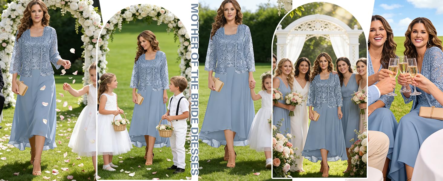 Features: This 2 pieces tea length mother of the bride dress features cowl neck, 3/4 sleeves, jacket, chiffon,