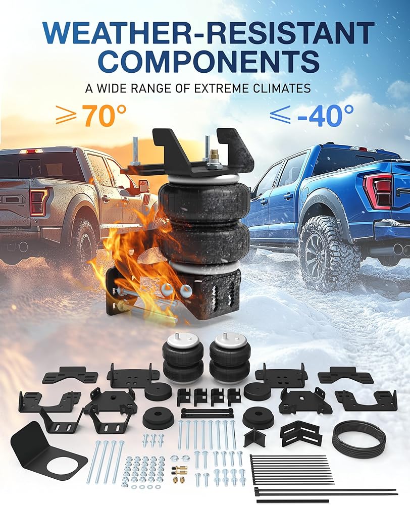 EASY, NO-DRILL INSTALLATION: Designed for hassle-free installation, this easy-installation suspension kit includes pre-drilled brackets, push-to-connect air fittings, and all necessary components for a straightforward setup. No drilling is required, making it a quick upgrade for your pickup truck suspension