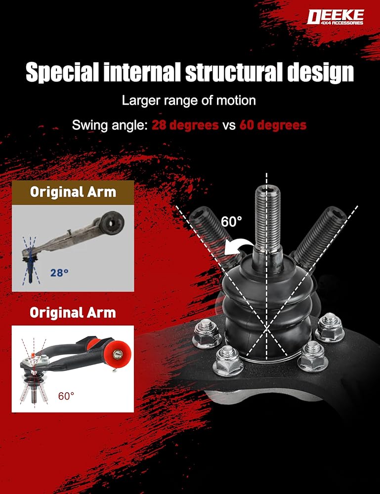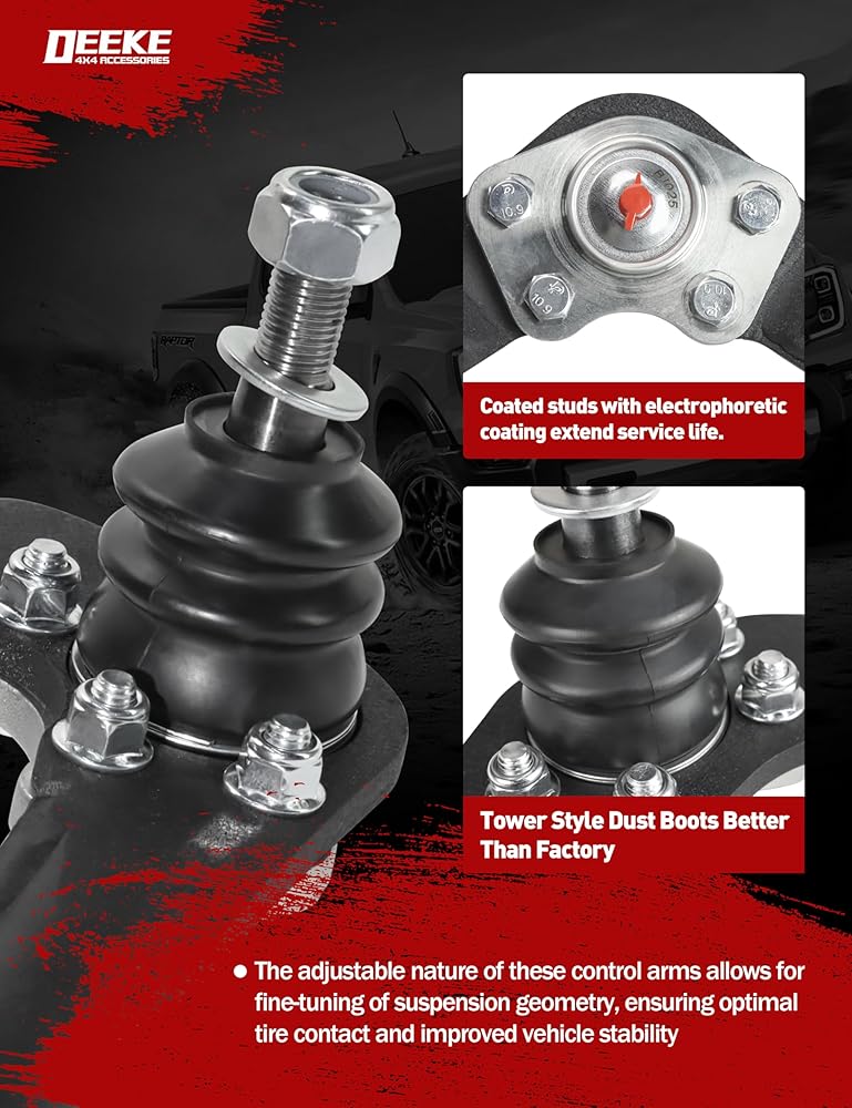 Optimized for 1–4 Inch Lift Kits: Designed to restore proper caster angle and ball joint geometry after lifting. Compatible with 1–4 inch lift or leveling kits, improving steering response, reducing uneven tire wear, and enhancing overall handling stability.