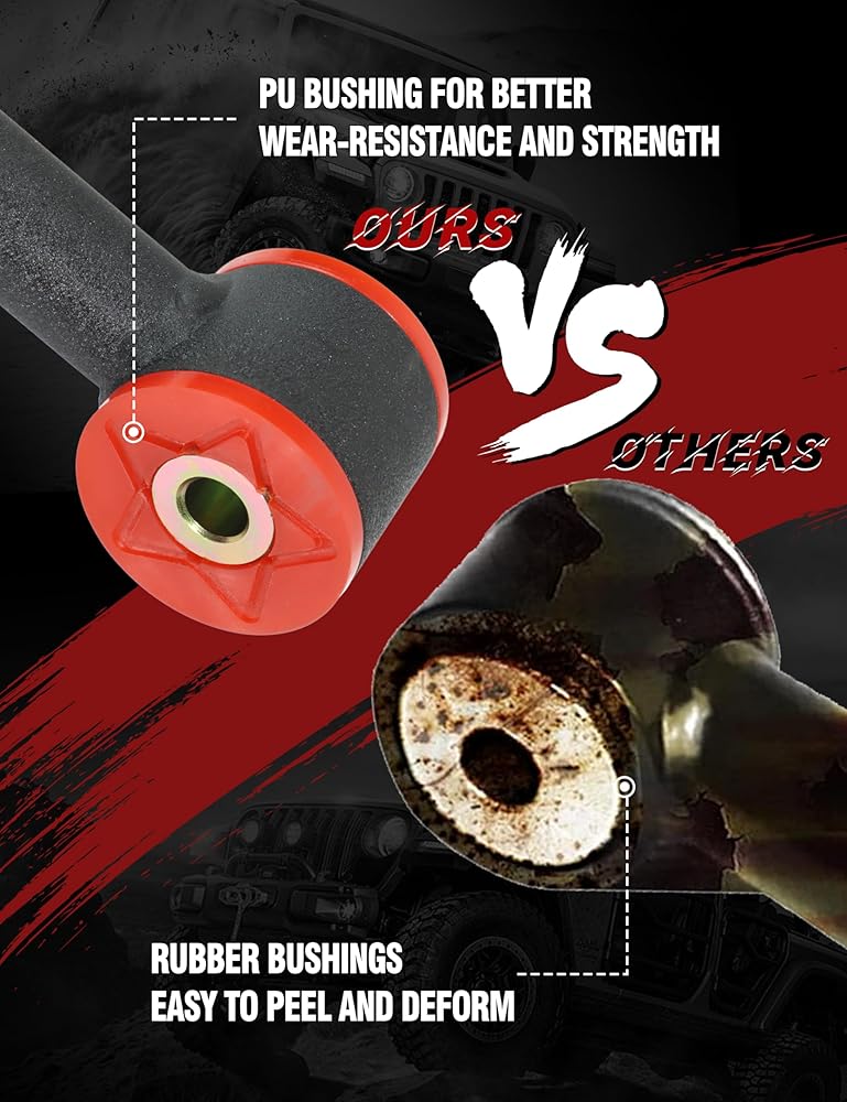 Heavy-Duty Construction with Polyurethane Bushings: Built from thick-wall tubular steel for superior strength and durability. Equipped with high-quality polyurethane (PU) bushings that resist wear and maintain suspension performance under heavy loads and off-road conditions.