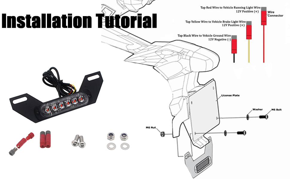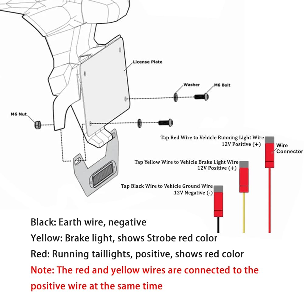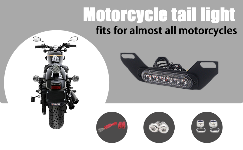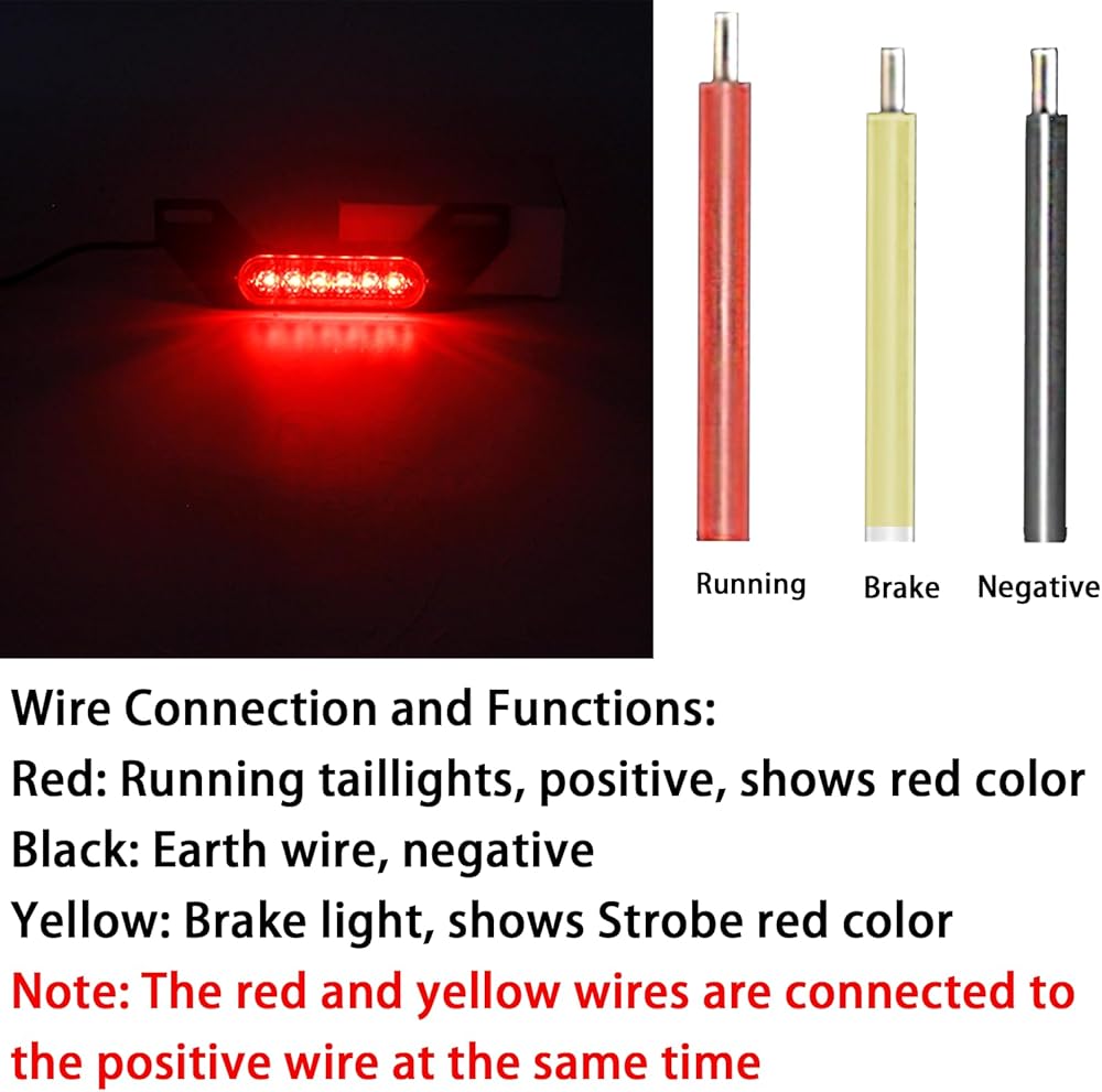Easy Installation and Compatibility: Easily connect to the brake and running light circuits, and the B6 taillight is compatible with most motorcycle models. Red Wire: Running taillights, positive, shows red color.Black Wire: Earth wire, negative Yellow Wire: Brake light, shows Strobe red color