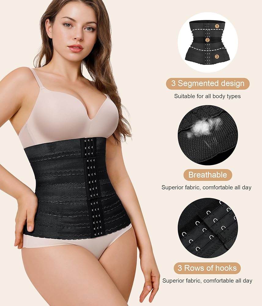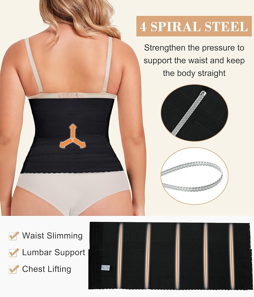 ✔ADJUSTABLE WAIST TRAINER WITH BUCKLE: The body shapers for women wrap waist trainer features a front 3-row hook and eye buckle design, making it easy to wear and take off in daily life. The waist cincher shapewear for tummy control can be flexibly adjusted as the body changes, and its adjustable characteristics ensure that we can feel comfortable throughout the day. The highly elastic corset waist trainer for women ensures a few inches reduction in the waist, creating an hourglass shape.