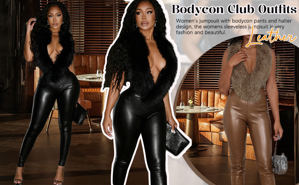 Feature: Women's jumpsuit with bodycon pants and halter design, the womens sleeveless jumpsuit is very fashion and beautiful.