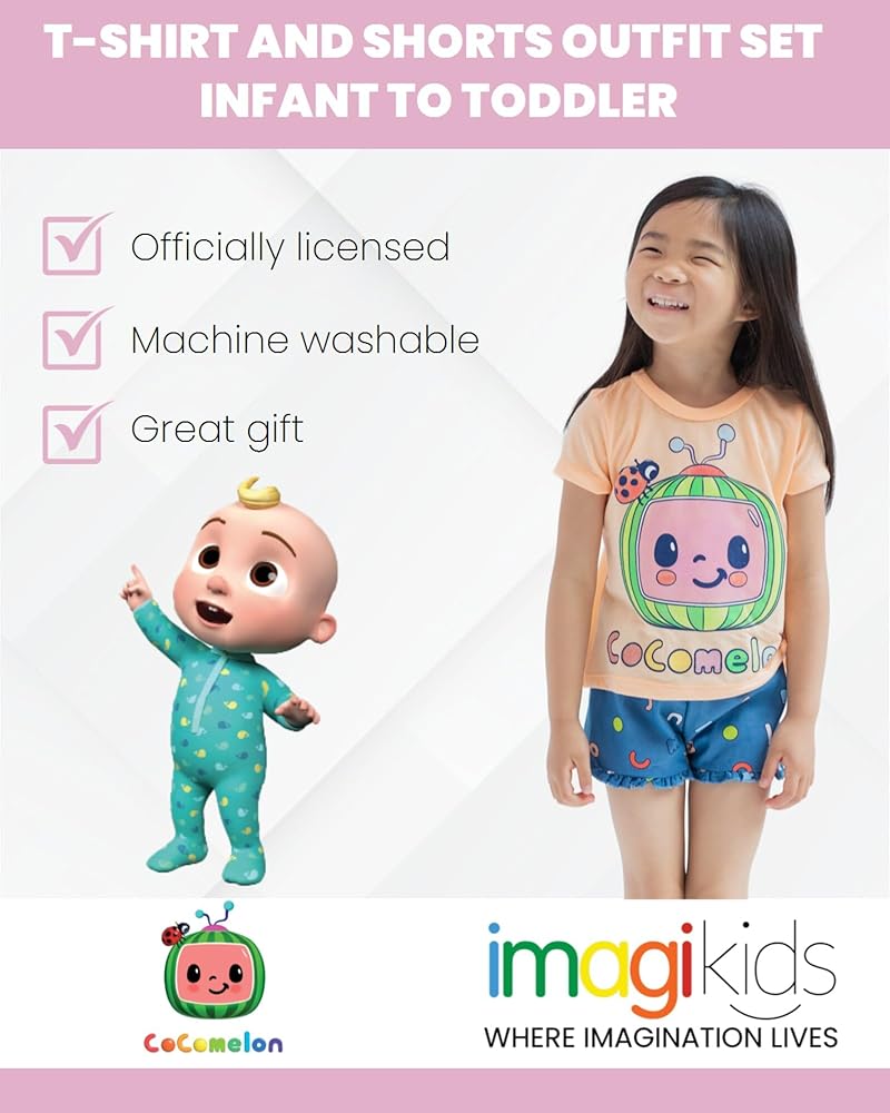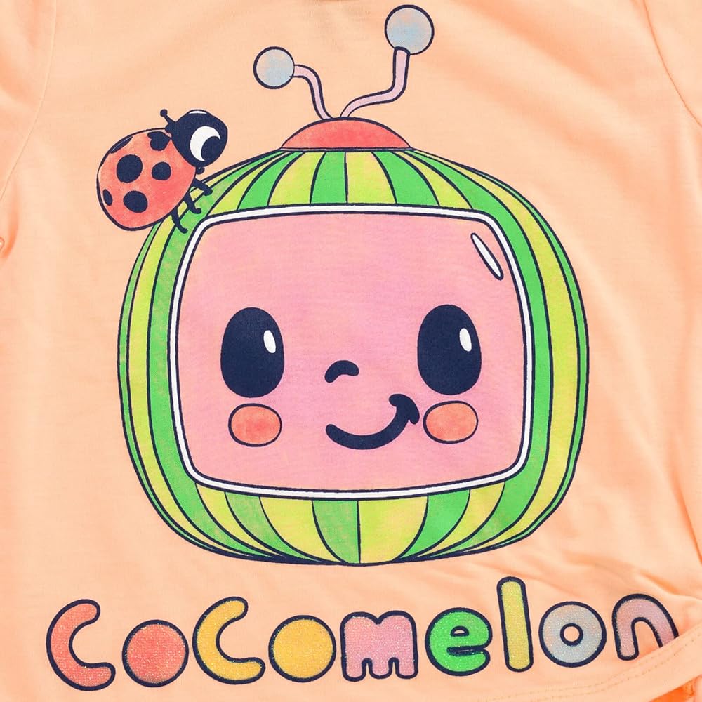 Officially licensed CoComelon toddler girls short sleeve graphic tee shirt and cute and stylish shorts