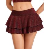 This shiny ruffled skort can be paired with crop tops, tank tops, or fishnet stockings to showcase a versatile style—wear it with high heels for a bold and eye-catching look, or with boots for an edgy and unique charm. Its design is also suitable for various occasions such as festivals, clubs, and nighttime outings