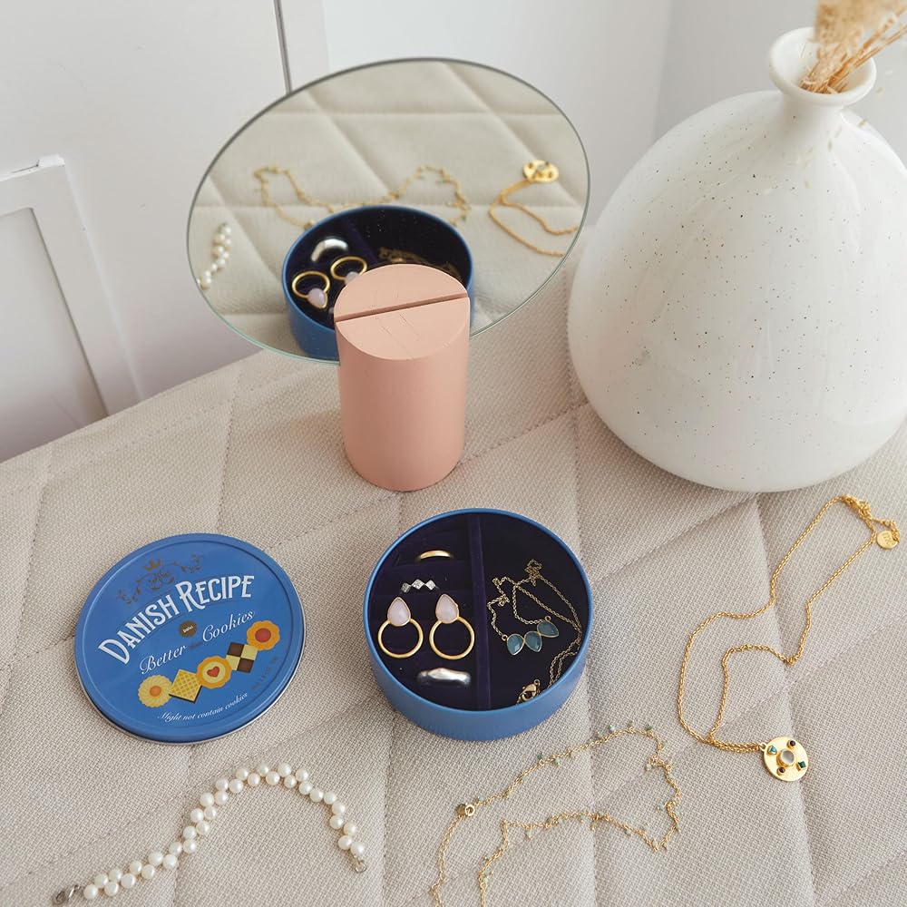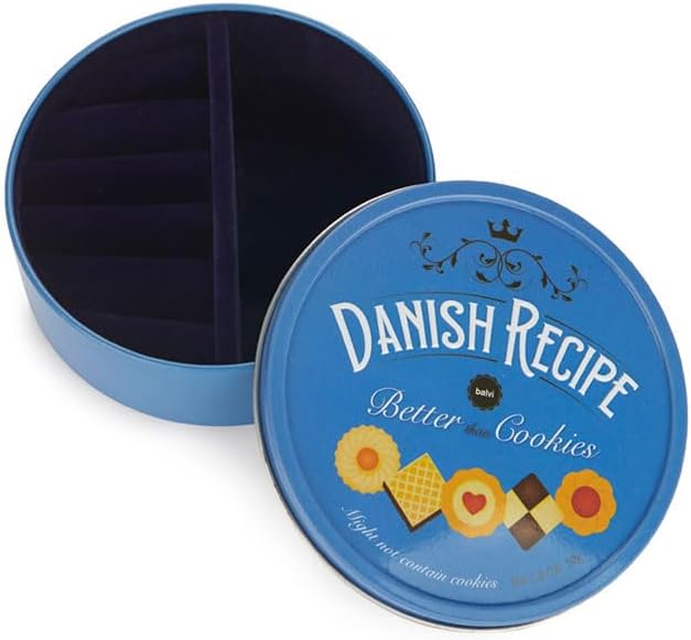 Balvi Danish Coockies Jewellery Box Blue Color Simulates a Biscuit Box Tin/Velvet. PERFECT GIFT. Ideal for lovers of classic cookies, jewelry, or unique and different objects. It will also be a practical gift for the traveler in your life. VERY PRACTICAL. Ample interior space with dividers to organize your jewelry. Perfect for safe transport, whether travelling or everyday use. DURABLE. Made of high quality materials. The exterior is...
