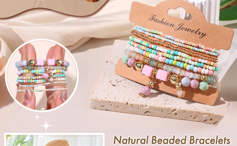 Boho Bracelets for Women: Our boho bracelets for women use a premium 7.3 inches elastic cord which can be stretched to 8.5 inches. These stretch bracelets are very easy to put on and take off. Therefore, our beaded bracelets won't break easily and fit most wrists