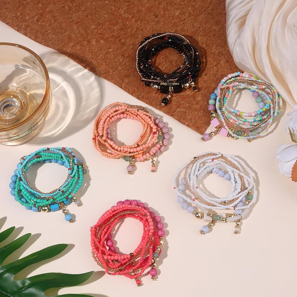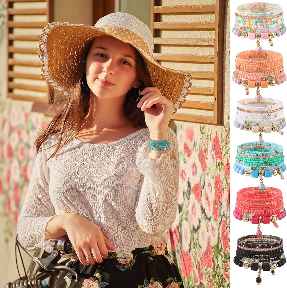6 Sets Bohemian Bracelet Sets for Women | Beaded Bracelets for Women | Stackable Stretch Boho Bracelets for Women | Multi-color Bracelets Dainty Jewelry Gifts