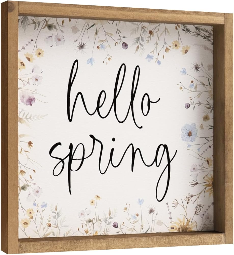 11.8" Hello Spring Sign, Wooden Spring Wildflower Wall Art Table Top Shelf Desk Mantel House Decor Indoor, Wood March Seasonal Bathroom Kitchen Room Office Rustic Farmhouse Home Decorations