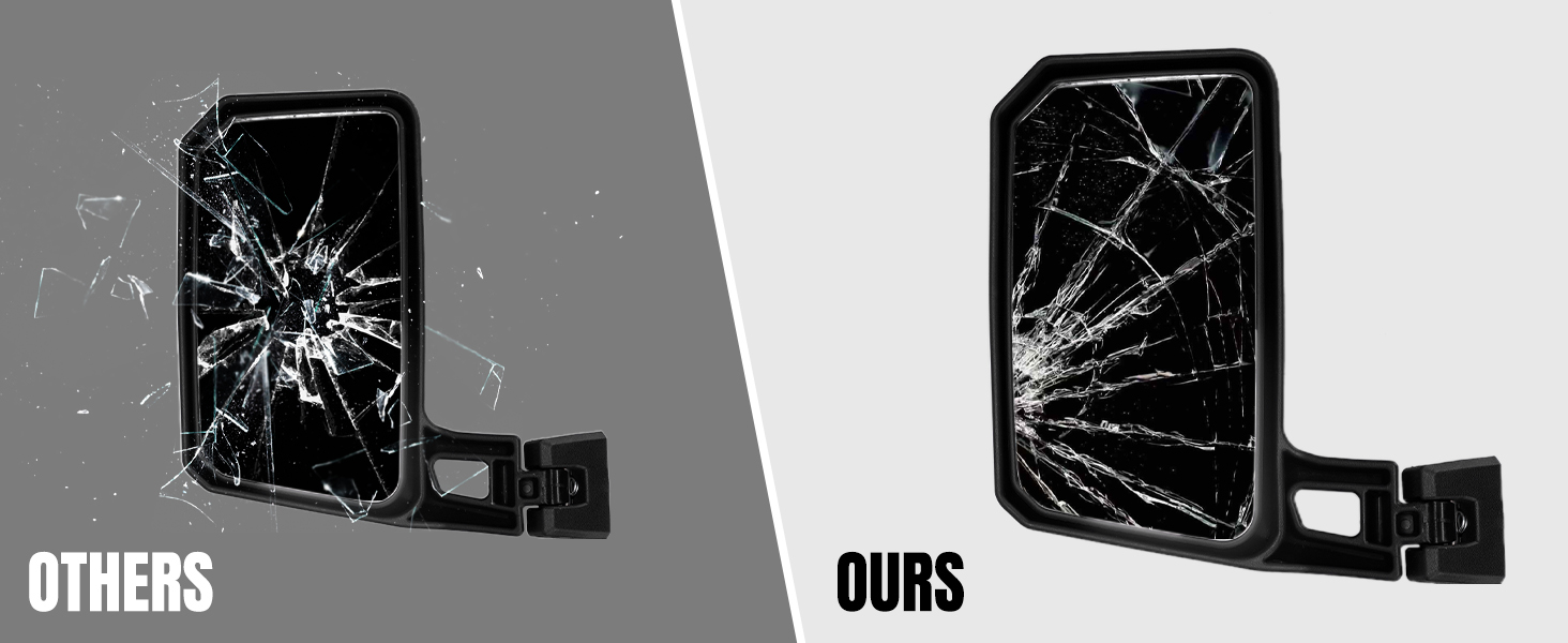 Robust and Foldable Design: Equipped with adjustable mirrors and breakaway hinge mounts, these mirrors fold in to prevent damage in tight spaces, ensuring long-lasting durability and functionality.