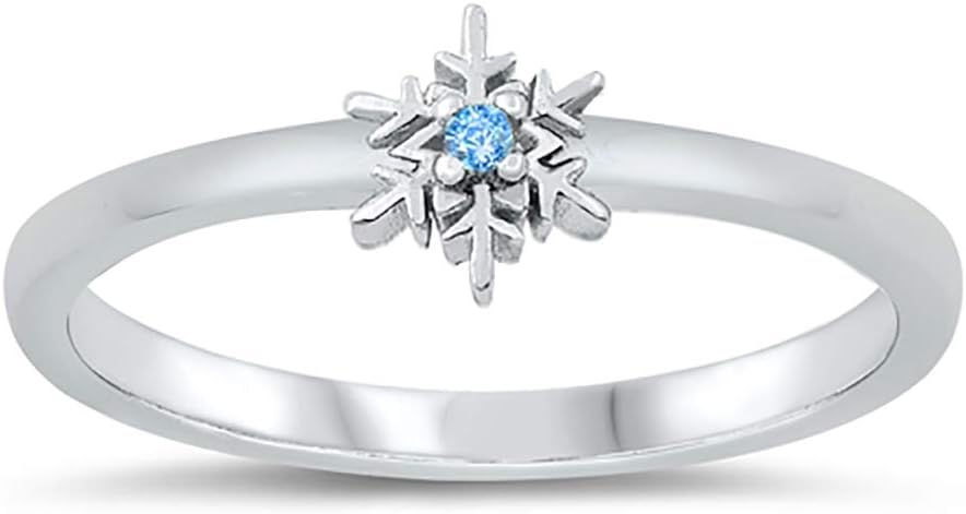 Blue Simulated Topaz Snowflake Ring Rhodium Plated Sterling Silver. Our silver jewelry is made from Sterling Silver. Sterling Silver is a mixture of high-quality 92.5% or higher pure silver with alloys to add strength and ability to withstand time and wear. All our items have a 925 Stamp referring to the Silver Purity that was used when crafted. Please Note: The 925 Stamp location may vary, depends on the item.