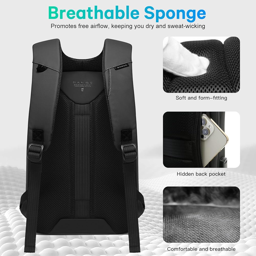 BANGE Anti-Theft Business Laptop Backpack, 15.6 Inch Lock Travel Backpack, Water-resistant Zippers with USB Charging Port, 16L Computer Bag for Men & Women