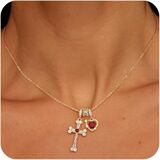 Unique Design: Crafted with sparkling zircon stones, the cross pendant is accentuated by a red zircon heart detail on the side, blending faith and love. Available in gold and silver tones, it offers versatile styling for different tastes, adding a delicate and meaningful touch to any outfit