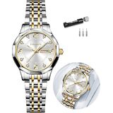 【Two-tone Luxury & Water-resistance Watch】Women's watches use original quartz movement and battery for good stability and accurate timekeeping. The crystal is crafted from high-strength scratch-resistant material. With 3ATM (30 meters) water resistance, it easily handles sweat, accidental rain, or splashes. Not suitable for wearing while showering, swimming, or diving.