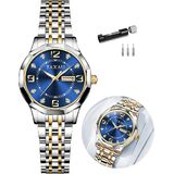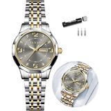 【Elegant Watch Design】Womens watch with date day features a silver dial paired with a gold-silver bracelet. Its gold Arabic numerals & diamond hour markers, gold-framed date-day window exudes classic watchmaking elegance and luxurious sophistication, ensuring clear and convenient readability.