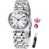 【About Watch Size】Women's Watch large Dial is 1.18 inch (30mm), nearly the same size as a 50-cent coin's diameter 1.2 inch (30.61 mm), Watch Length: 7.68 inch (200mm); bracelet width: 0.55 inch (14mm); case thickness: 0.39 inch (10mm). Includes an adjustment tool for adjusting the bracelet length.