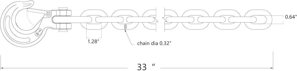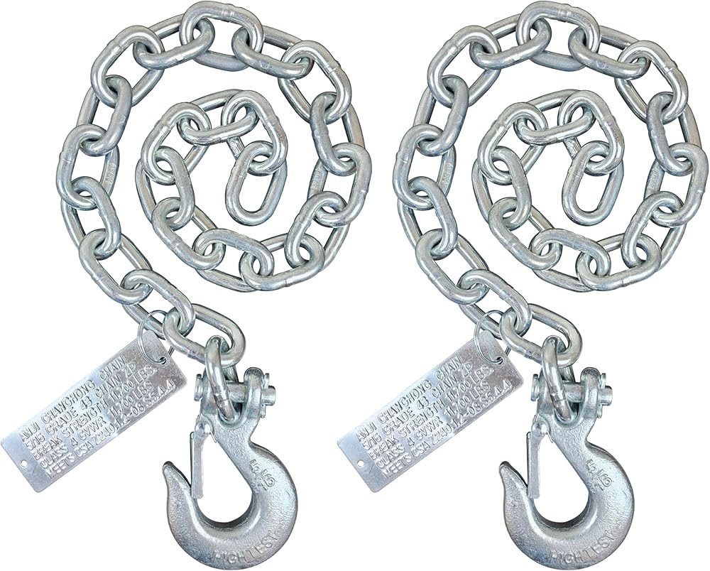 Heavy Duty Trailer Safety Chain With Hook On One End, 2pcs, Class 4 Breaking Strength As 8/0-7600lbs, 5/16''-11700lbs, 3/8''- 16200lbs. (5/16''x 33'')