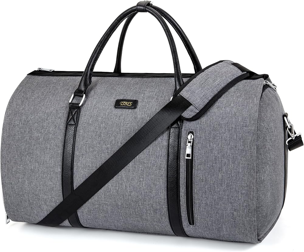 Convertible 2 in 1 Garment Bag: This travel garment bag combines the garment bag and a carry on duffel bag into one unit. You can convert this duffle bag for travel into a great hanging garment bag, and you will never have to worry about your suit or dress wrinkling due to improper storage when you are on a business trip or traveling. Perfect for business trip, overnight trip, vacation, weekend getaway, gym, camping and etc.