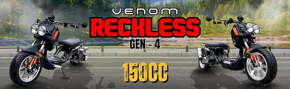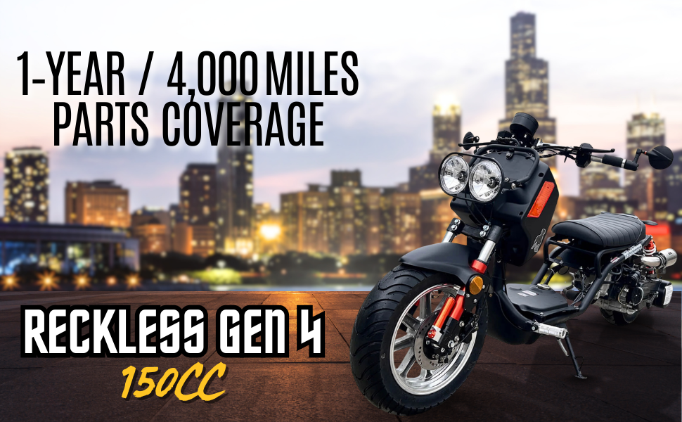 Reckless 150cc Scooter Generation 4 Automatic Transmission PMZ150-21, Street Legal Motorcycle for Adults, LED Headlights Digital Speedometer, Stretched-Out Ruckus Style Powerful GY6 Engine Smooth Ride