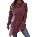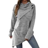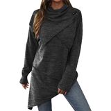FEATURE: Asymmetrical hem top flatters your torso and makes you look slimmer. The length are adequate for covering your bottom, would definitely look cute.Vintage horn buckle embellished, simple but not monotonous.