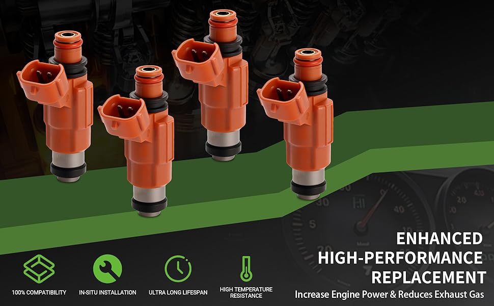 [Performance]: AUTOREBO fuel injectors crafted with corrosion/heat-resistant reinforced materials, and features high-temp o-rings for durability. It match/exceed OEM specs for precision fit. Engineered for quick installation, superior performance & lasting reliability under extreme conditions.