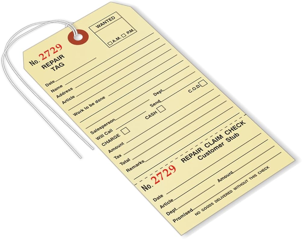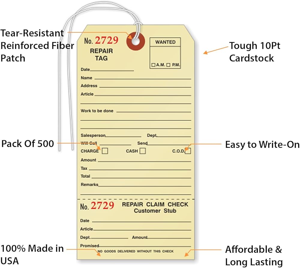 - DURABLE. Repair Tags are made of 10 point cardstock, which is standard in the industry.