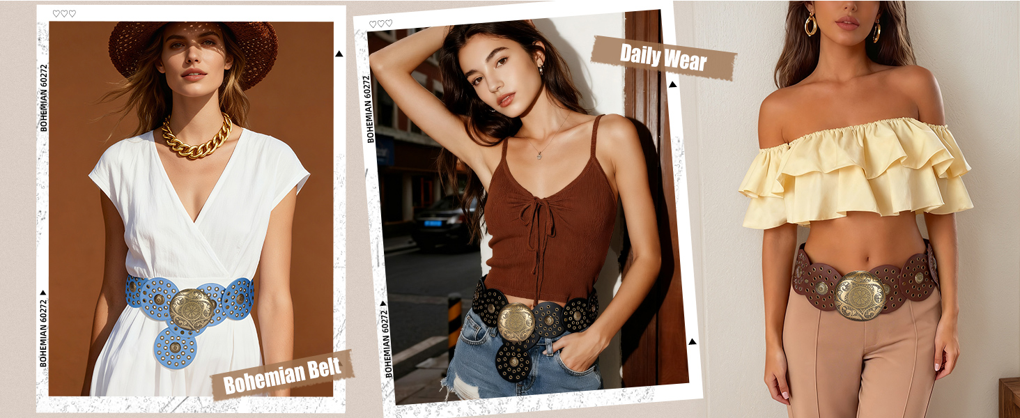Fashion Accessory: With multiple colors and sizes, this wide waist belt is perfect for country or boho-chic looks, maxi dresses, hippie jeans, skirts.