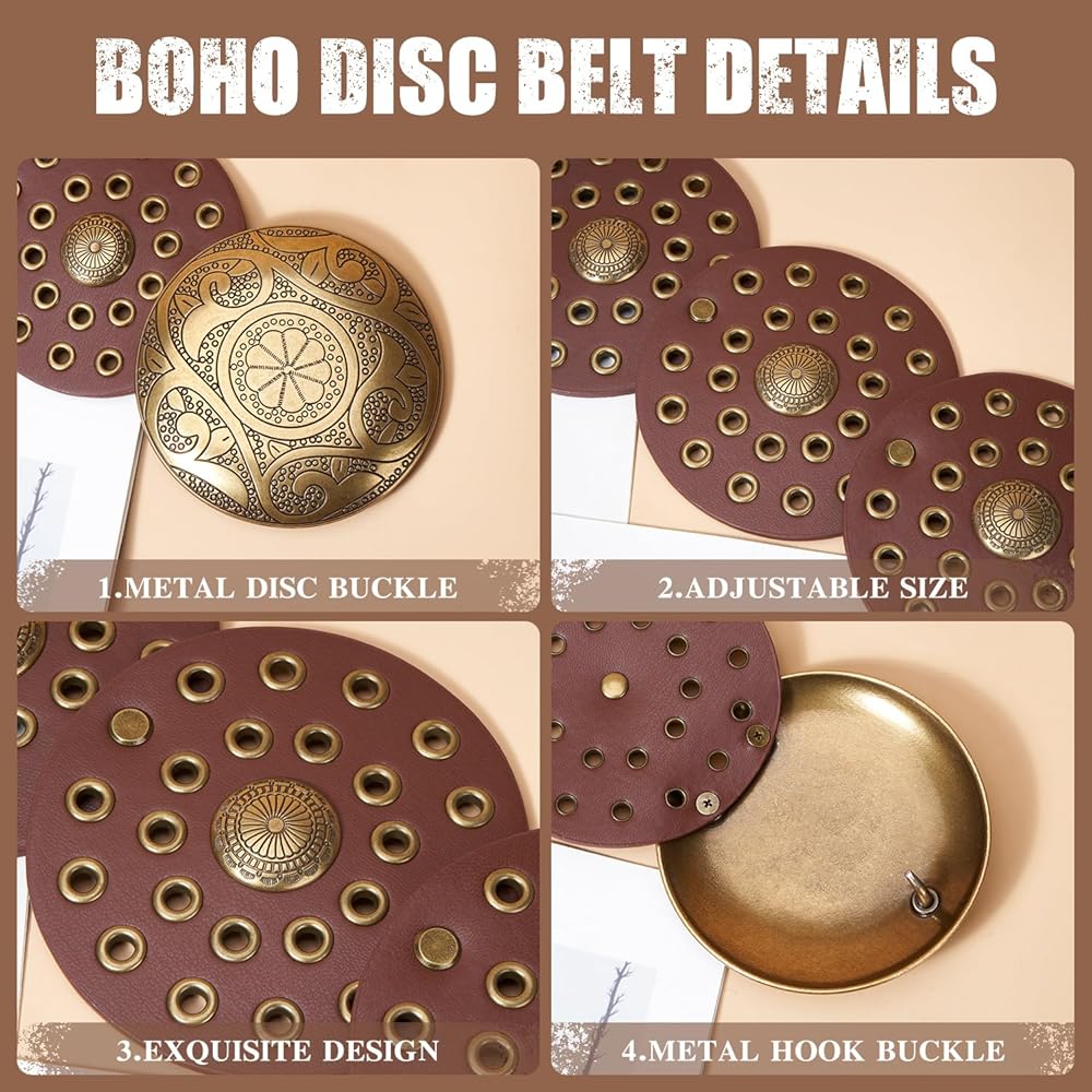 Premium Leather Construction: Crafted from premium faux leather, the chunky disc belt boasts a soft yet durable construction for long-lasting wear.